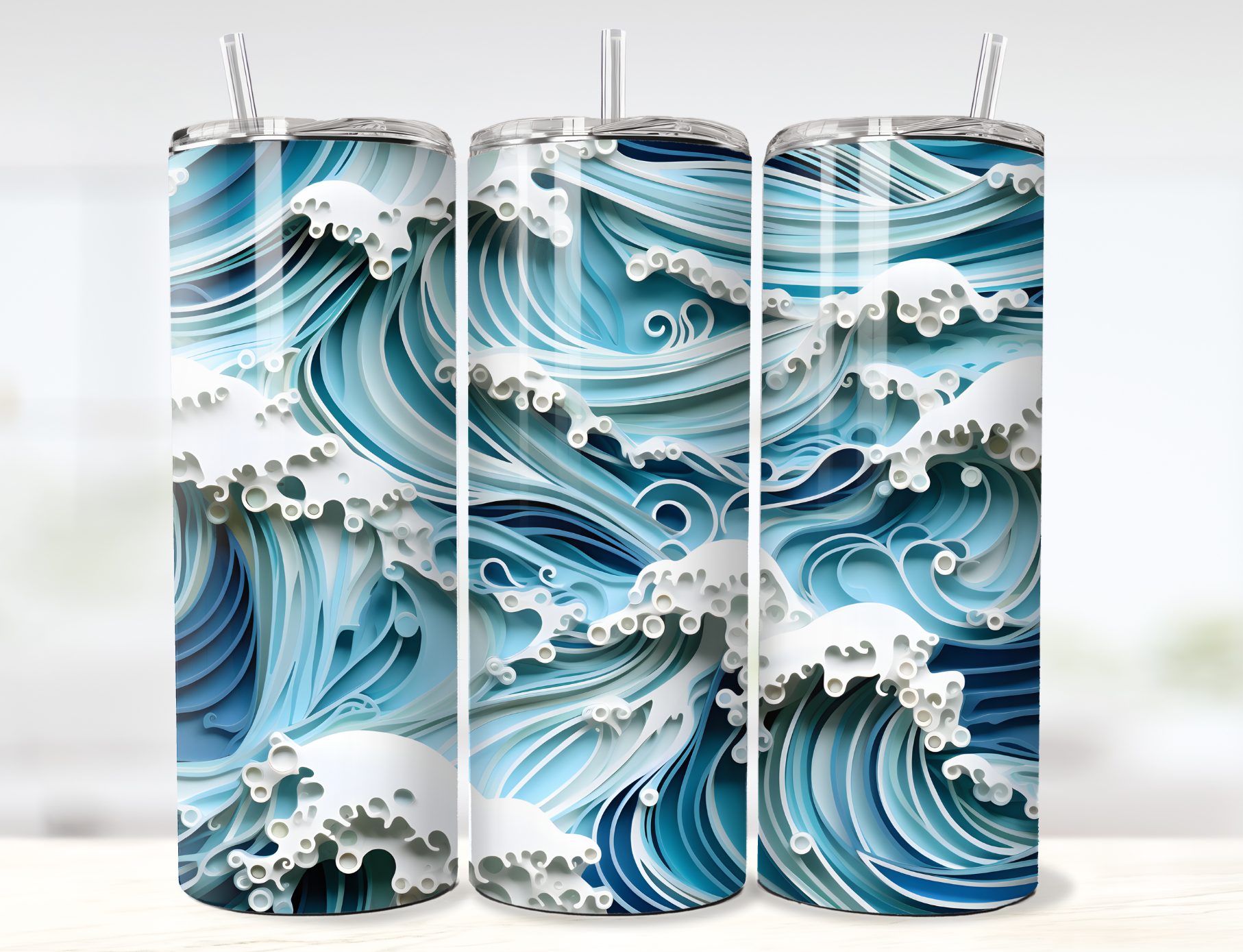 3D Ocean Waves 3D Layered Paper Tumbler Wrap PNG