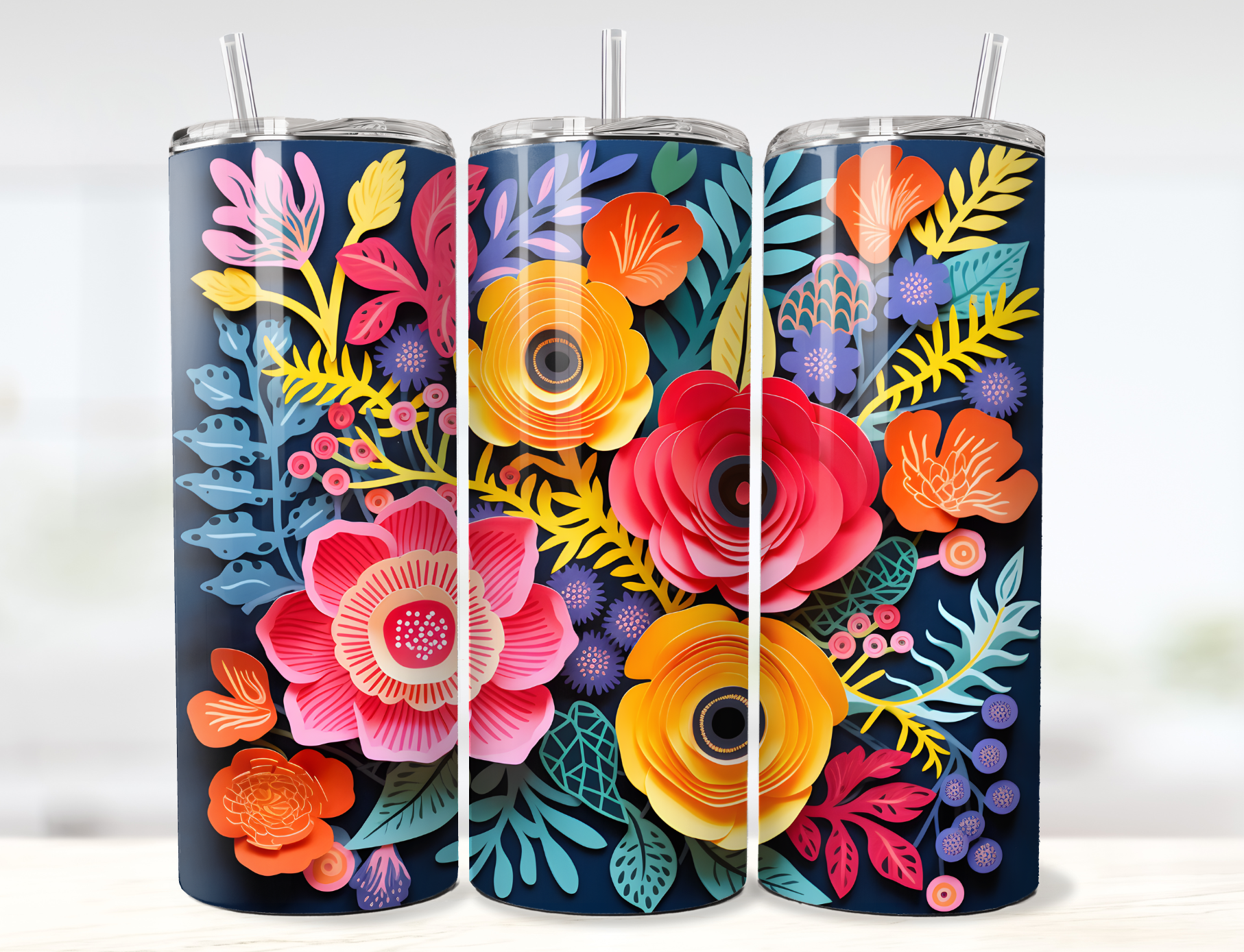 3D Paper Flowers Colorful Collage Tumbler Wrap PNG