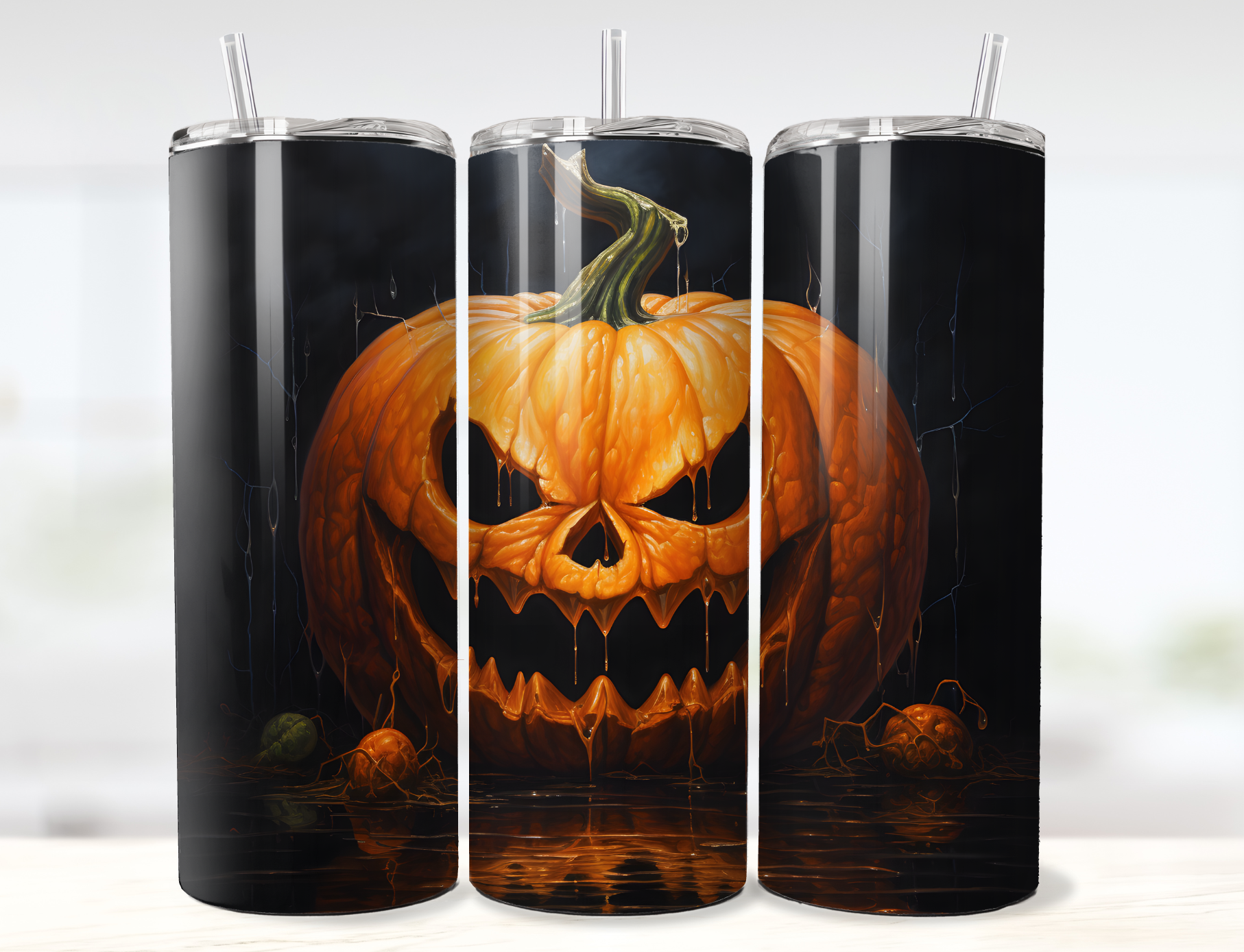 Scary Jack O Lantern Pumpkin Halloween Tumbler Wrap PNG